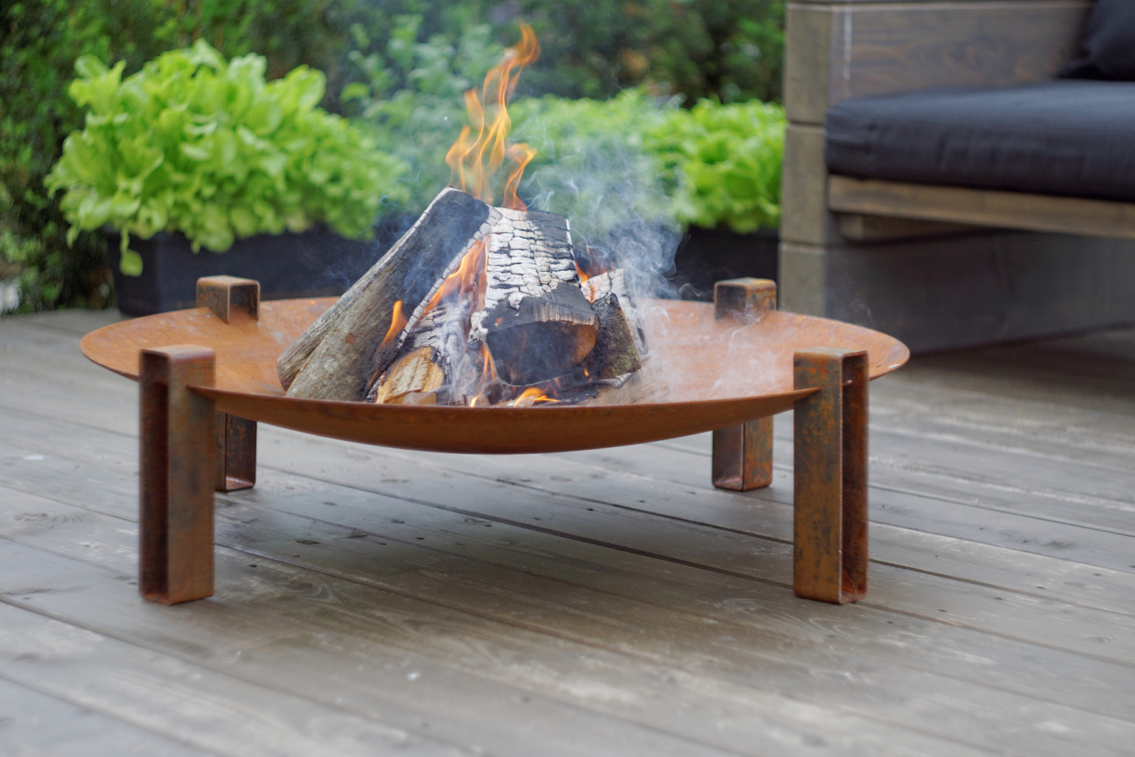 Design Feuerschale SPACE Super XXL aus massivem Rohstahl (rostend, 3,0 mm Materialstärke), Beine aus massivem Rohstahl (rostend, 3,0 mm Materialstärke)