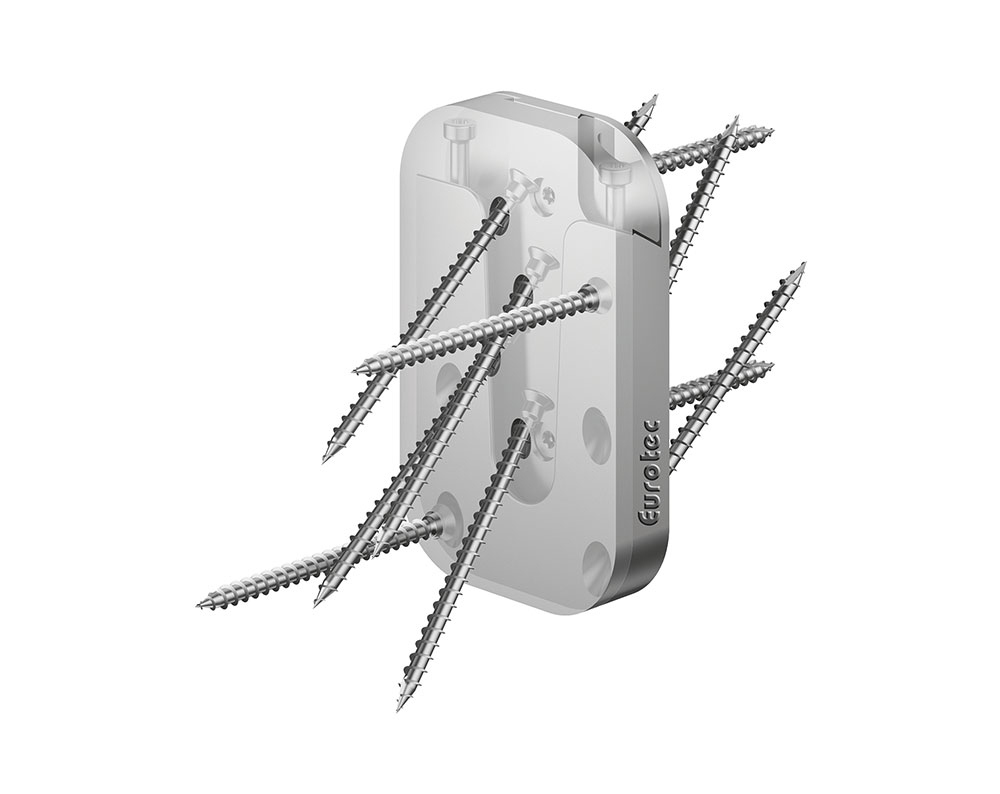 - Anschließend wird der Magnus in die Ausfräsung eingesetzt und mithilfe der mitgelieferten Systemschrauben befestigt. Am anzuschließenden Bauteil wird dann die Fräs- und Montagelehre in derselben Einstellung wie zuvor aufgelegt und der zweite Teil des Magnus-Einhängeverbinders verschraubt. Die Vormontage ist nun beendet und das anzuschließende Bauteil wird eingehängt.