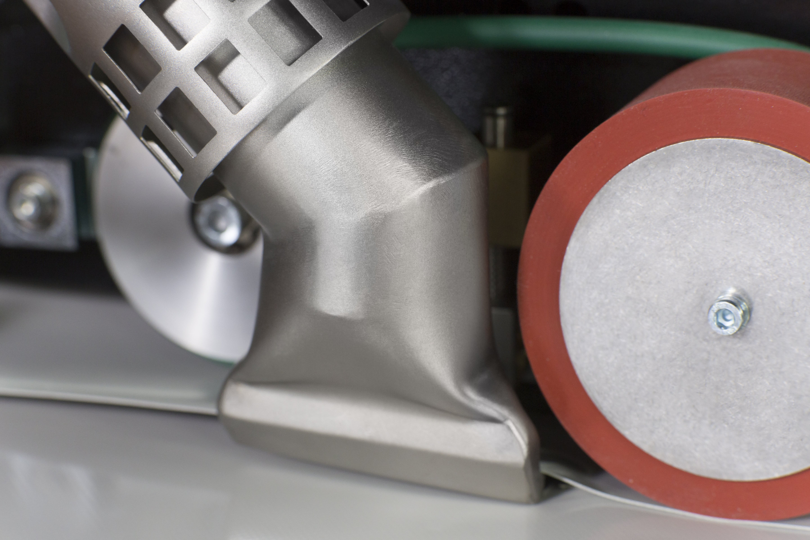 Das FORSTHOFF-DB schweisst zuverlässig Gurtbänder von 50mm Breite auf. Das starke Heissluftgebläse im FORSTHOFF-Tube-Design produziert eine gigantische Luftleistung von 600 Ltr./Min. und unterstützt somit leistungsstark in Verbindung mit der bewährten Düsengeneration den fortschrittlichen Getriebemotor des FORSTHOFF-DB Automaten. Der Hitzeschild wertet zusätzlich die großzügig ausgelegte Abrollvorrichtung des FORSTHOFF-DB Automaten auf und verhindert ein Erhitzen und Verformen der Gurtband-Spule.