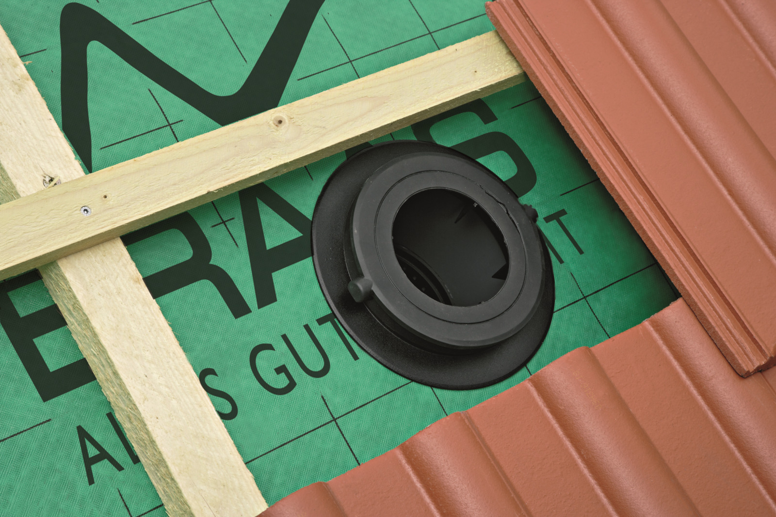 Die DivoDämm Anschlusshülse kann mit Braas DuroVent Dachdurchgängen, DuroVent Premium Sanilüftern und Ton-Sanilüftern eingesetzt werden.