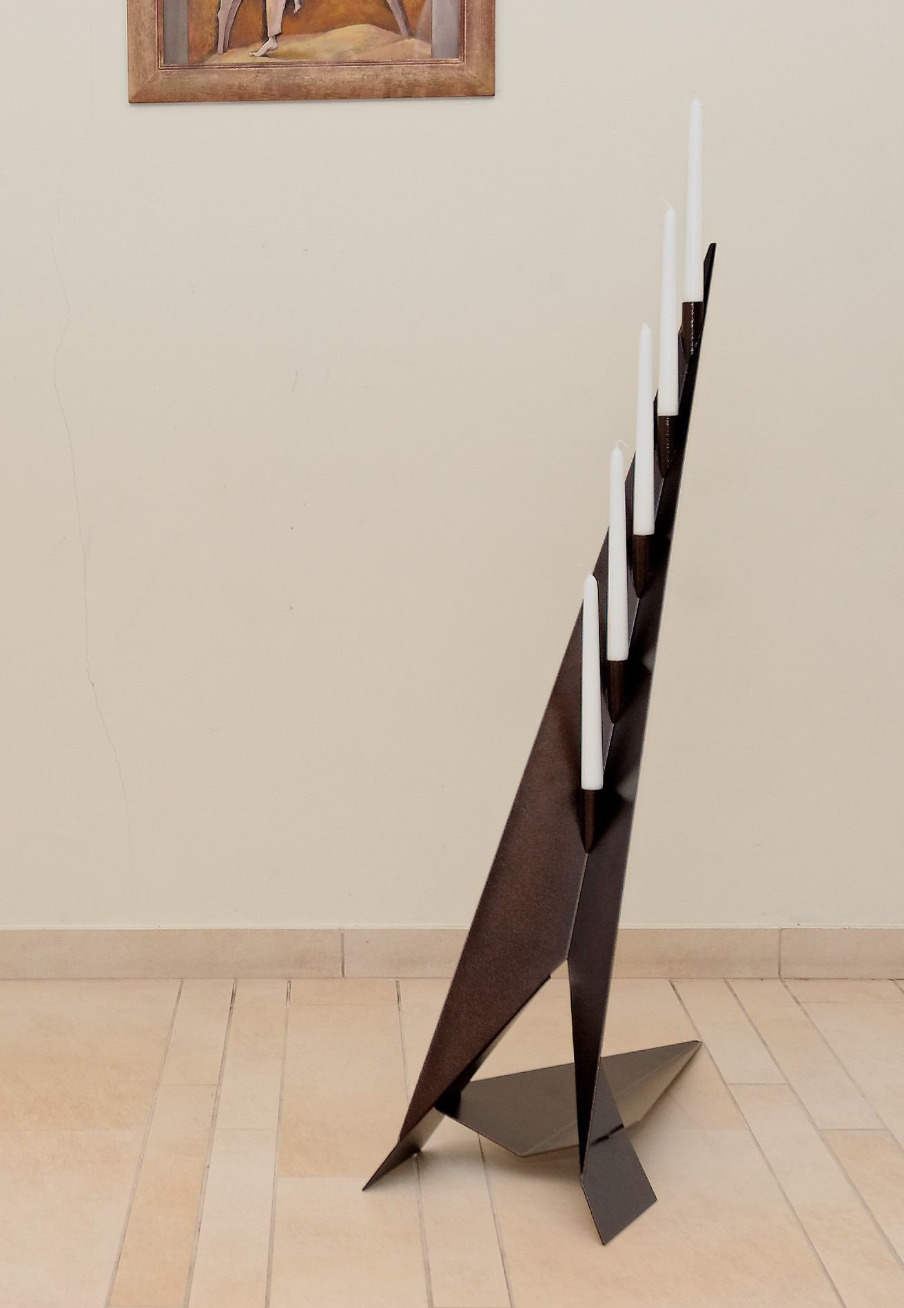 Design Kerzenleuchter FUTURA Kupfer-antik besticht durch sein außergewöhnliches Design und ist ein Blickfang erster Güte - hochwertige Pulverbeschichtung - Fünf-flammig - Lieferung erfolgt zerlegt - sehr leicht zu montieren - Stecksystem. Dieser solide Kerzenleuchter wird in einer europäischen Designer-Werkstatt weitgehend in Handarbeit hergestellt und entspricht höchsten Qualitätsansprüchen. Lieferung ohne Kerzen.