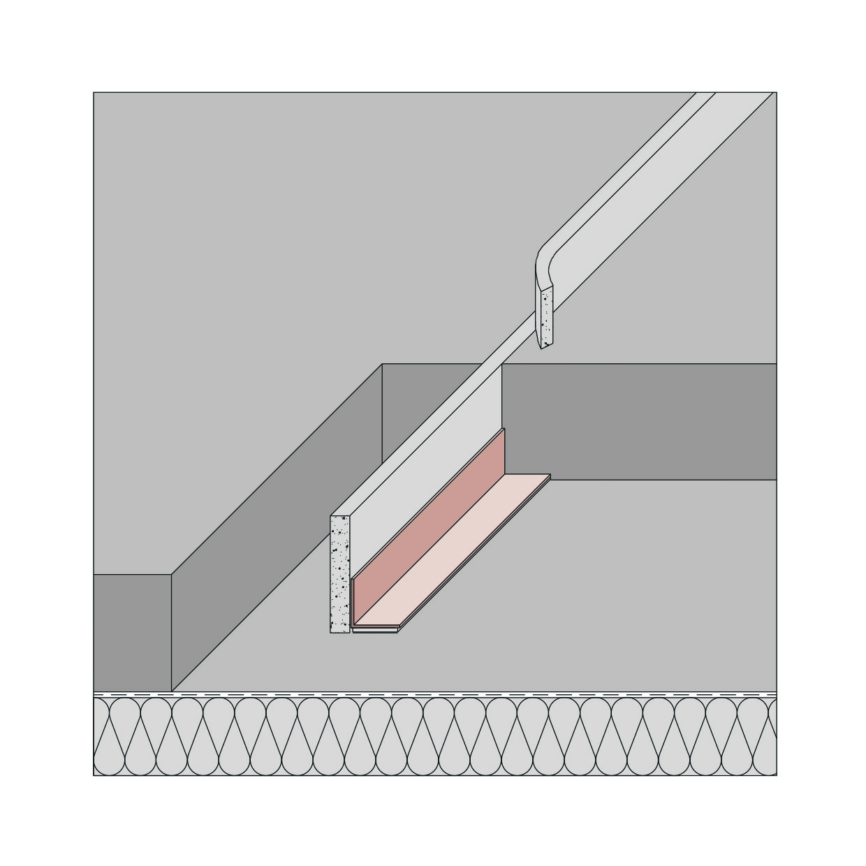 Bewegungsfugenprofil aus PVC mit asymmetrischer Form für saubere und entkoppelte Anschlüsse zu anderen Bauteilen.