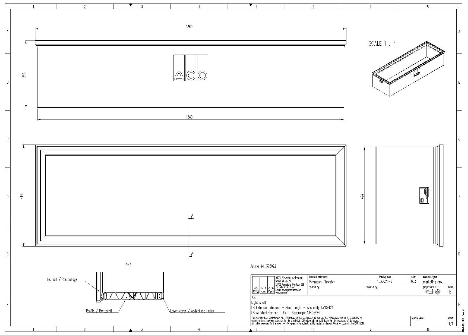 ACO Aufstockelement 4-seitig geschlossen für Kunststofflichtschächte