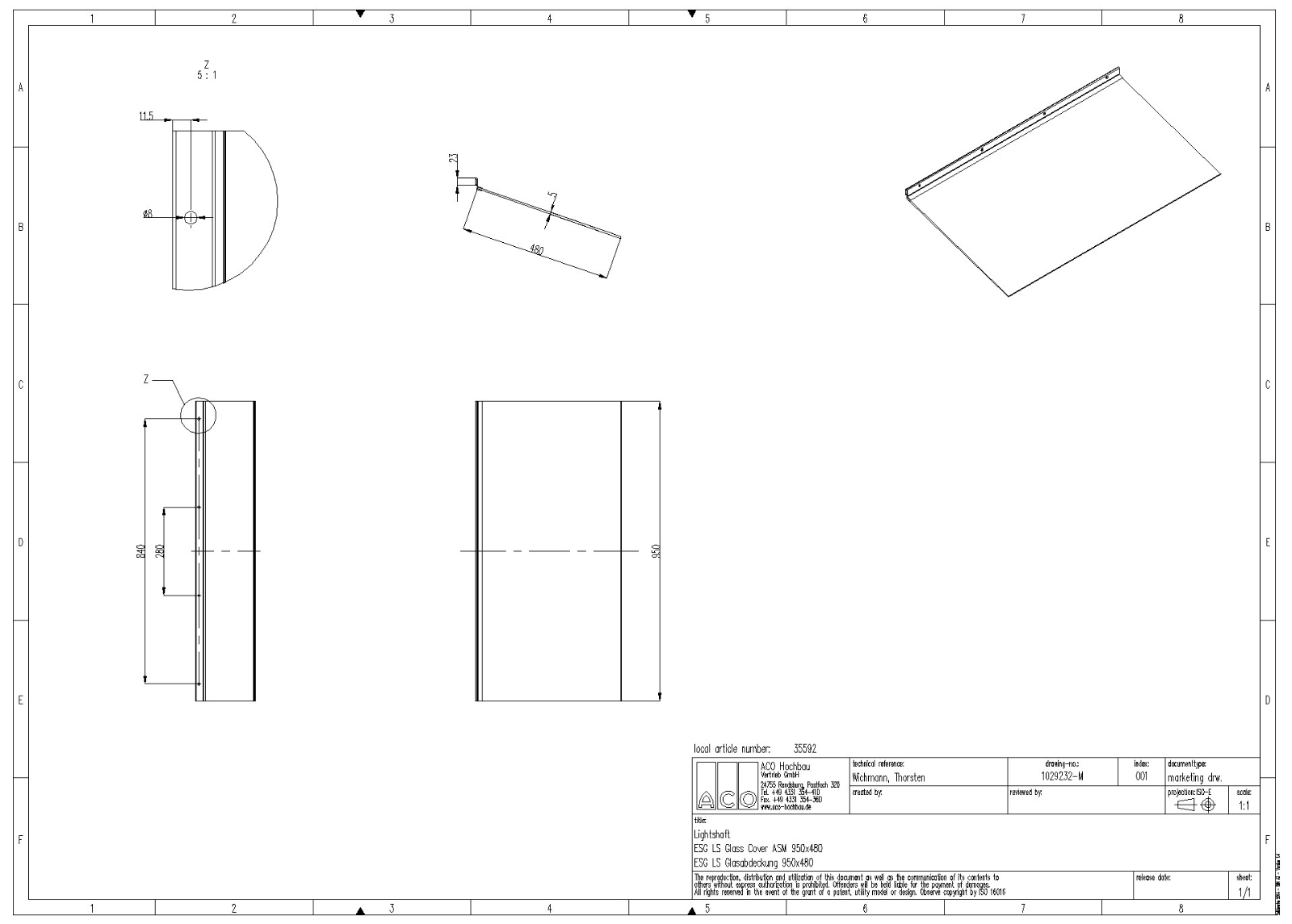 m.Scharnier, f.Lichtsch. 800 x 400mm