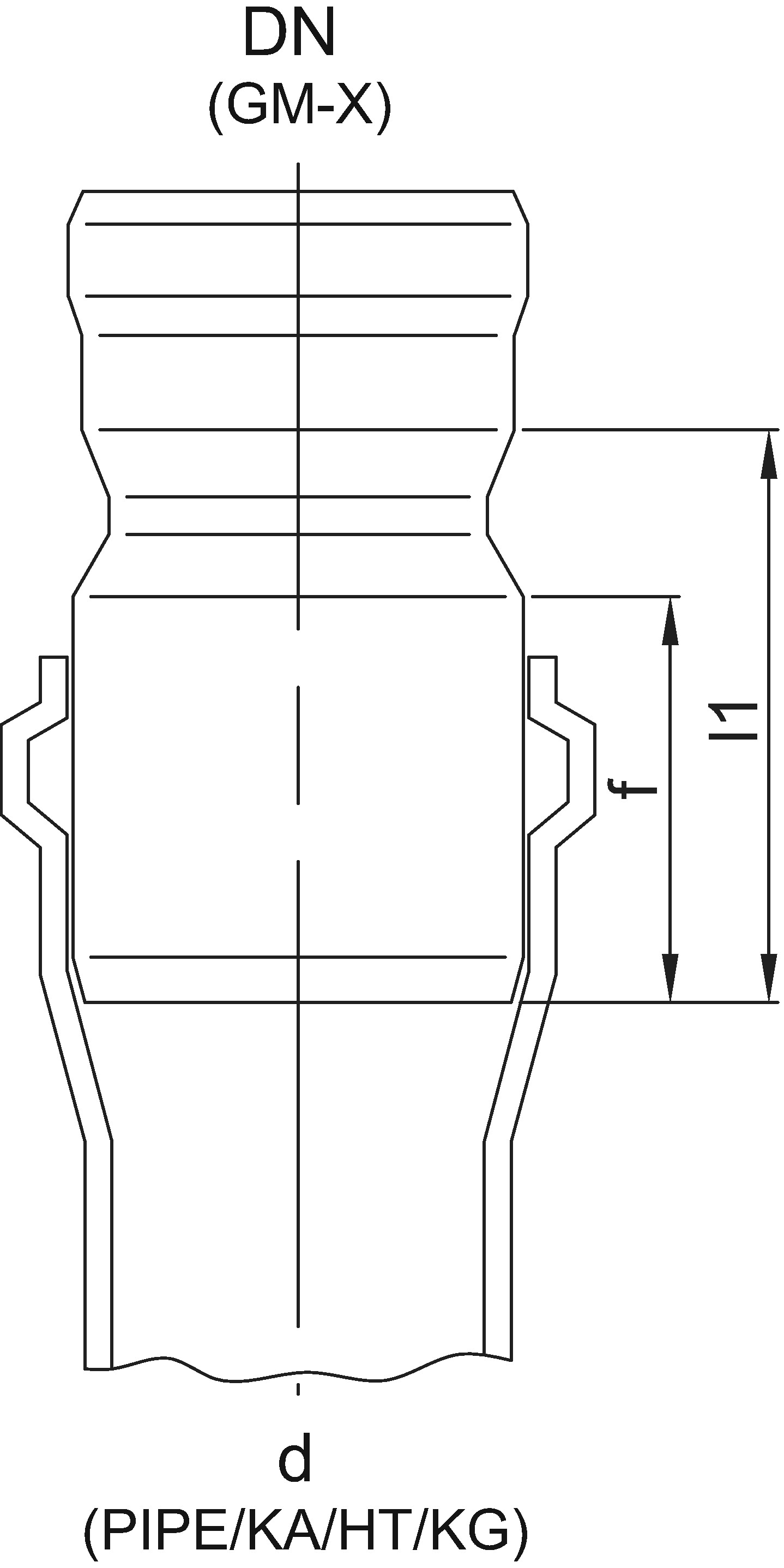 Anschlussstücke von GM-X mit Muffe 1 A an Kunststoff-Muffenrohr