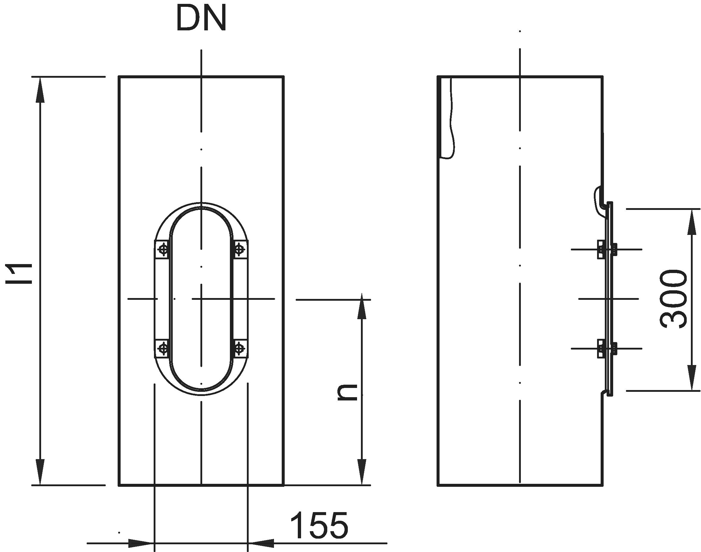 DN 300, 68cm, längl.Öffn., Innenbesch.