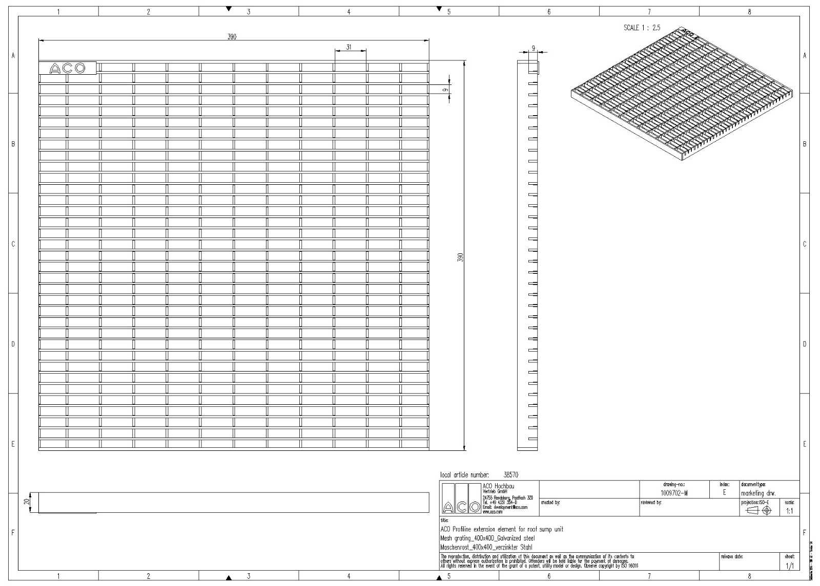 ACO Profiline Maschenrost 30/10 für Dachaufsatz Stahl verzinkt für Fassadenentwässerung