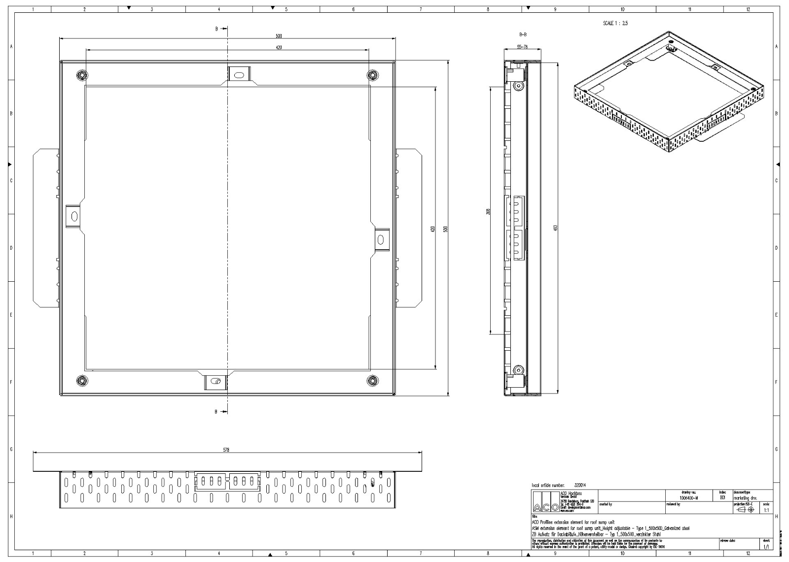 ACO Profiline Aufsatz für Dachabläufe höhenverstellbar Stahl verzinkt für Fassadenentwässerung
