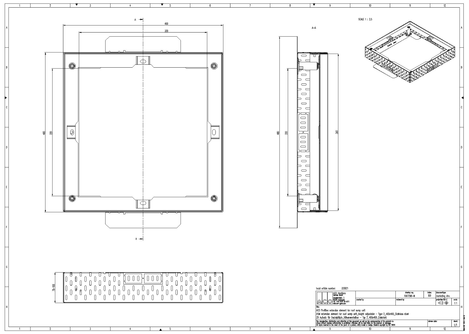 ACO Profiline Aufsatz für Dachabläufe höhenverstellbar Edelstahl für Fassadenentwässerung