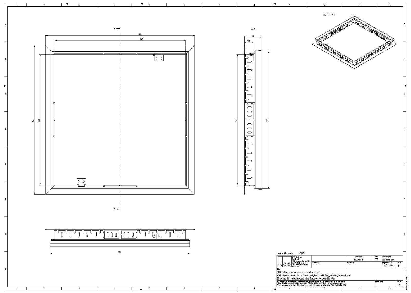 ACO Profiline Aufsatz für Dachabläufe fixe Bauhöhe Stahl verzinkt für Fassadenentwässerung
