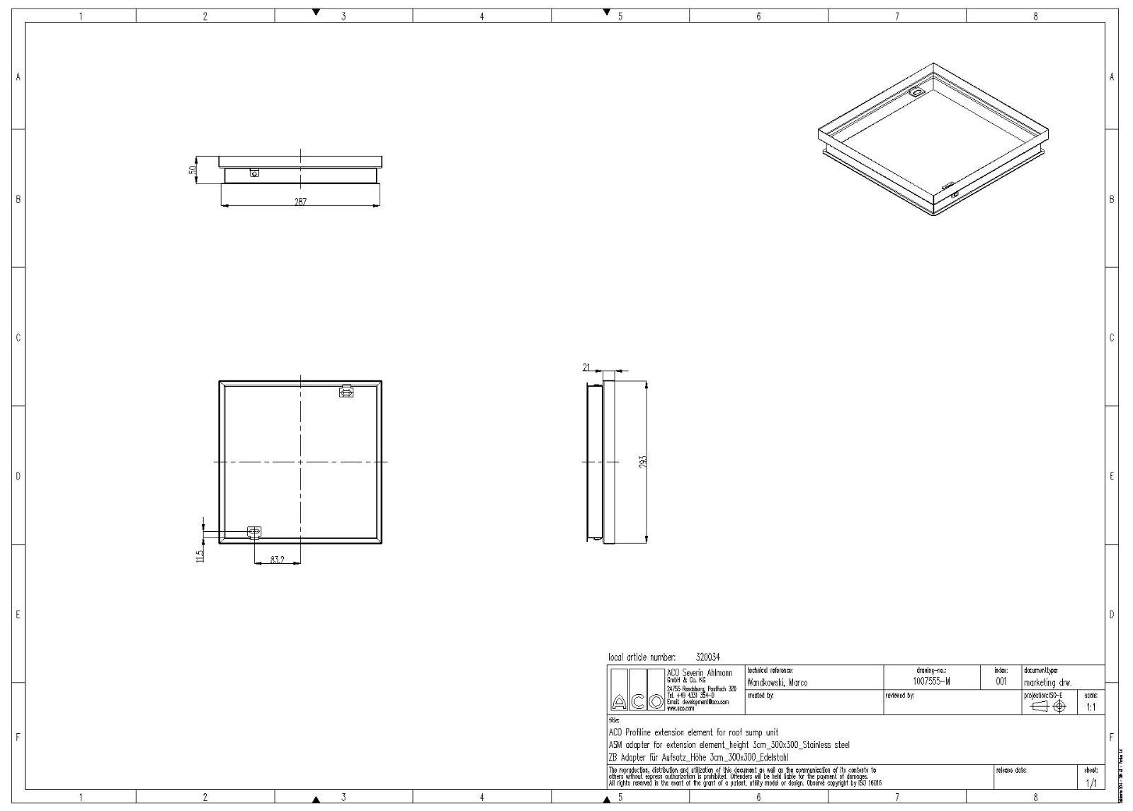 f.Ablaufaufsatz, 30 x 30 x 3cm