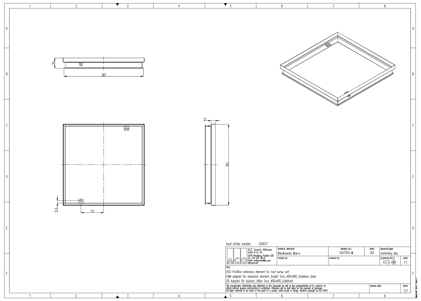 ACO Profiline Aufstockelement für Dachablauf Aufsätze Edelstahl für Fassadenentwässerung