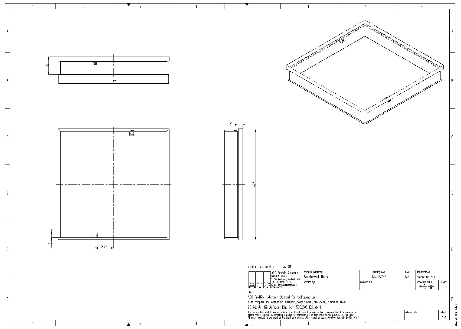 f.Ablaufaufsatz, 50 x 50 x 6cm