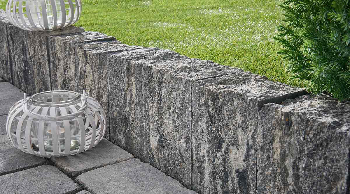 Die bruchrauen Sichtflächen, gepaart mit naturhaften Gesteinsfarben, verleihen diesem charakterstarken Palisadenstein seine kraftvolle Wirkung.