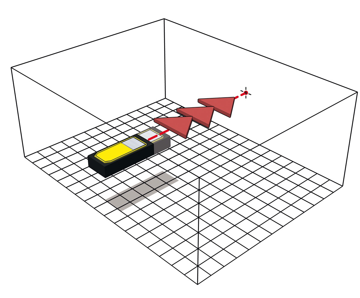 - Kompaktes Gerät mit 8 Messfunktionen: Länge, Fläche, Volumen, Dauermessung, Pythagoras mit 2 und 3 Messpunkten, Minimum und Maximum Tracking.