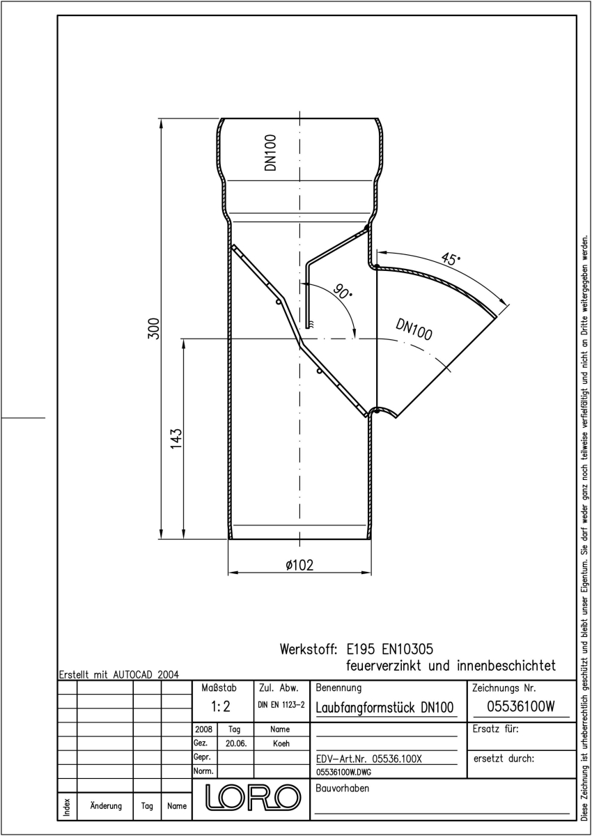 LORO-X Regenrohr mit Laubfang nach DIN EN 1123 mit erhöhtem Qualitätsstandard gemäß RAL-Gütezeichen, mit 2-Kammern-Steckmuffenverbindung, aus Stahl, feuerverzinkt, Baustoffklasse A1, formstabil, bruchfest, rückstausicher, langlebige Innenbeschichtung gemäß DIN EN ISO 2178 auf Basis einer 2K-Epoxid-Kombination, Farbton: Rotbraun, DN 100