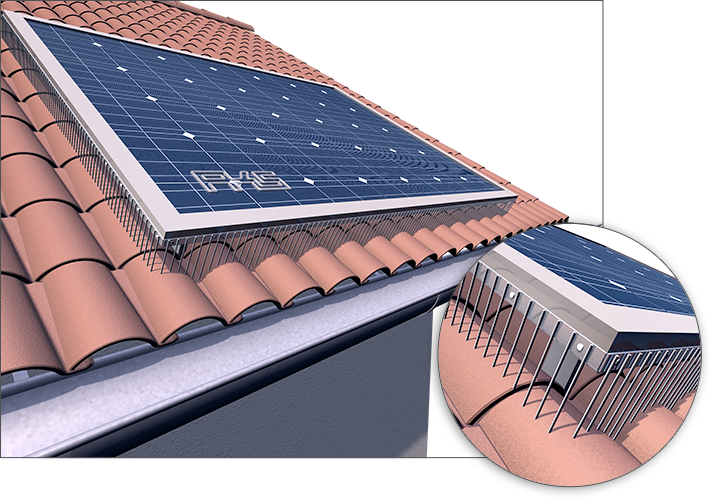 PIXX®- PV-Spikes sind speziell für die seitlich umlaufende Montage an Photovoltaik- und Solarthermie-Panels konzipiert, um das Unterkriechen von Tauben unter die Panels zu verhindern.