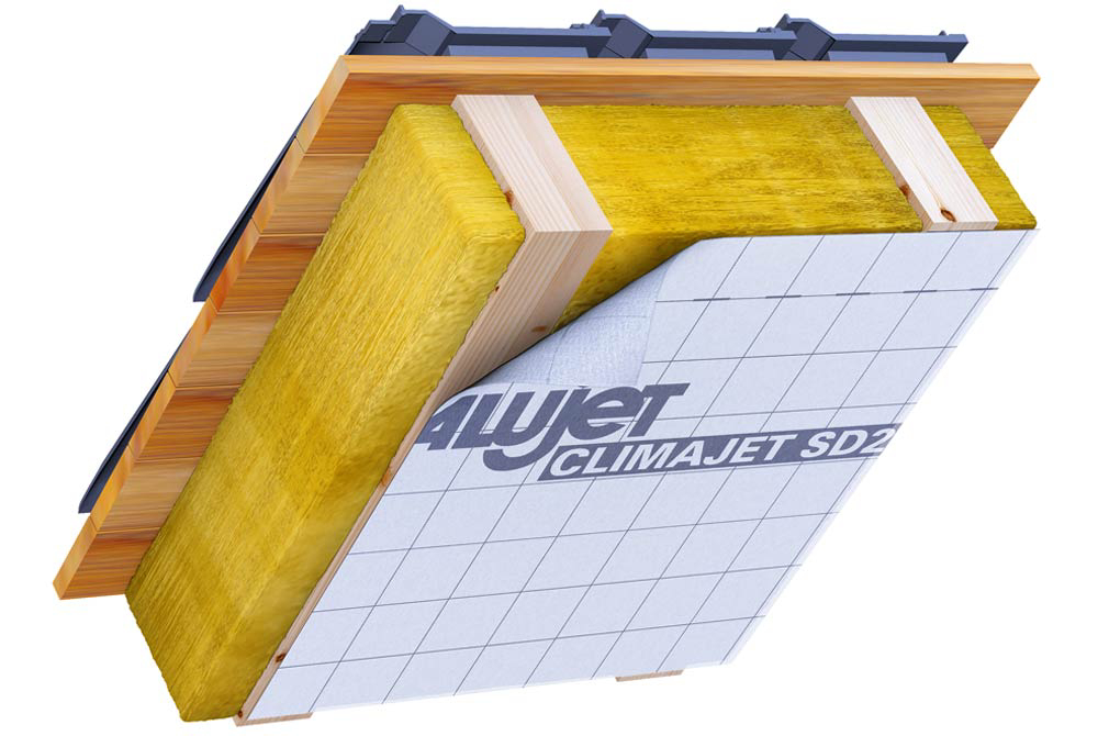Die ALUJET Climajet SD2 ist eine multifunktionale Dampfbremse für 3 Einsatzbereiche, wie der Einsatz von innen, von außen für Sanierung und der Einsatz unter Aufdachdämmung.