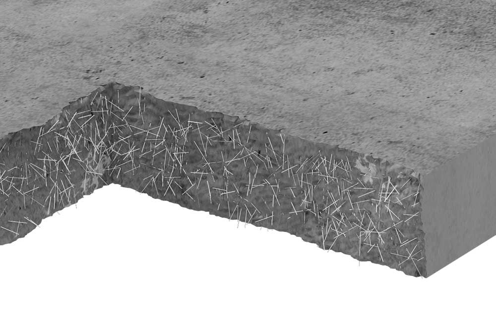 Der Zusatz von Fasern in Beton und Estrich wirkt verstärkend und reduziert das auftreten von Rissen.