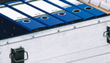 - B 50: 4 Ordner 75mm Rückenbreite oder 6 Ordner 50mm Rückenbreite. Ausgestattet mit Gurtführung.