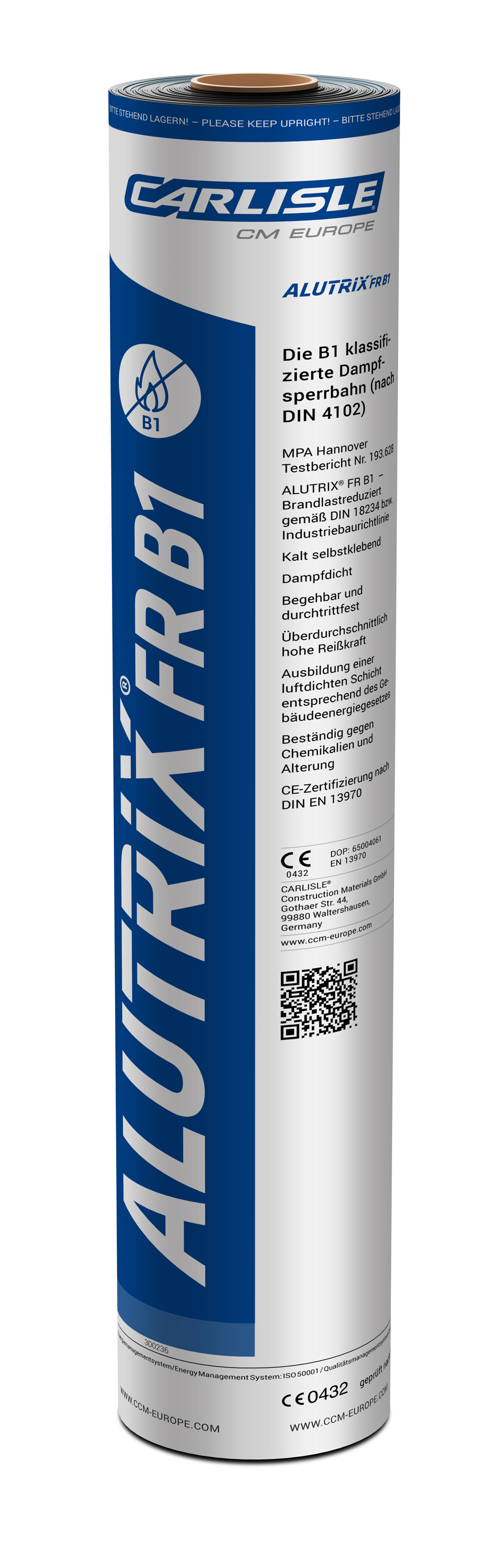 - ALUTRIX® FR B1 erfüllt die Baustoffklasse E nach EN 13501-1 und die Baustoffklasse B1 nach DIN 4102-1