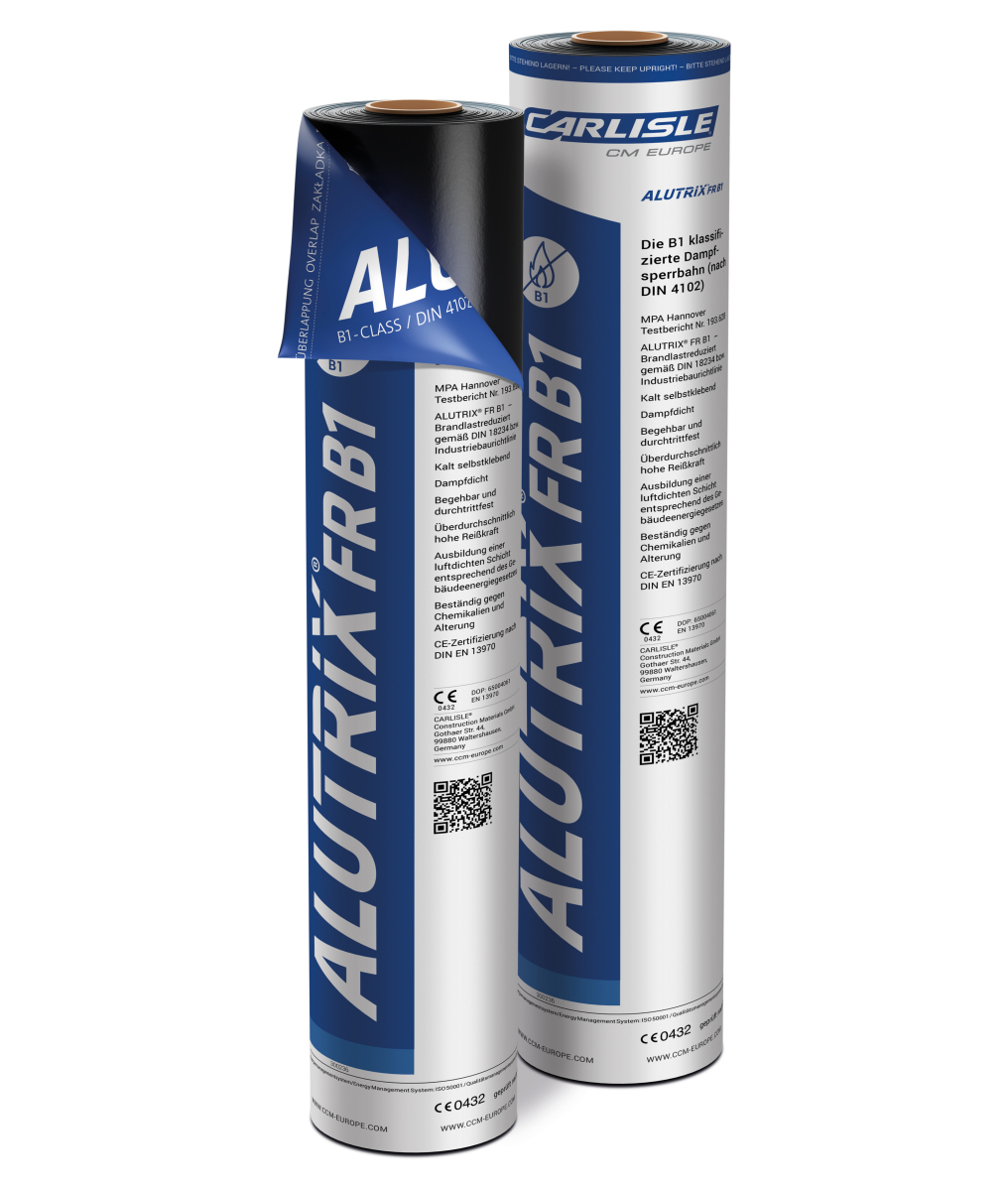 - ALUTRIX® FR B1 bildet neben der Dampfsperrfunktion (sd- Wert > 1.500) gleichzeitig eine luftdichte Ebene entsprechend DIN EN 12085 oder DIN EN ISO 12572.