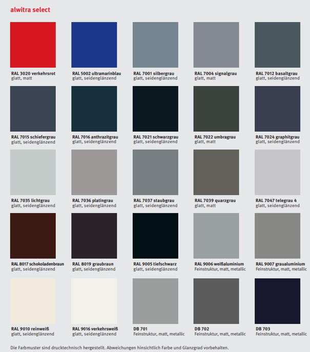 - erhältlich in Alu-natur, kunststoffbeschichtet oder eloxiert