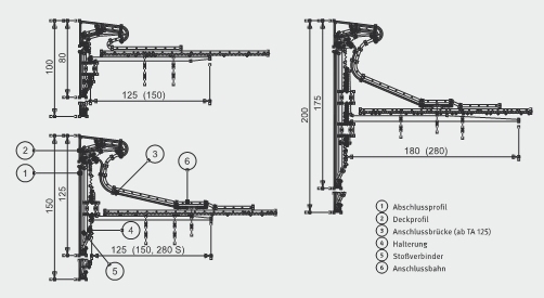 - industriell gefertigte montagefertige Profilserien (T plus, TW 125plus, TA , TA-4F, TAG, art-line 1) für alle Dachabdichtungen (Kunststoff- oder Bitumen-Dachbahnen) aus Aluminium
