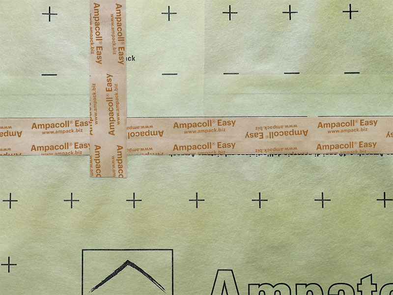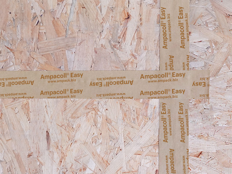 Acrylklebeband auf Papierbasis für die luftdichte Verklebung von Überlappungen bzw. Stössen bei Bahnen und plattenartigen Baustoffen, jeweils bei glatten Oberflächen im Innenausbau.