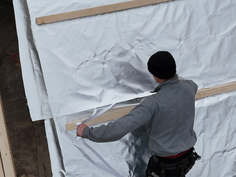 Nicht brennbare, diffusionsoffene reflektierende Bahn für hinterlüftete, geschlossene Fassaden oder Fassaden mit offenen Fugen hinter Energiegewinnungsanlagen (PV, Solar) und durchsturzsichere Unterdeckbahn / Unterspannbahn.