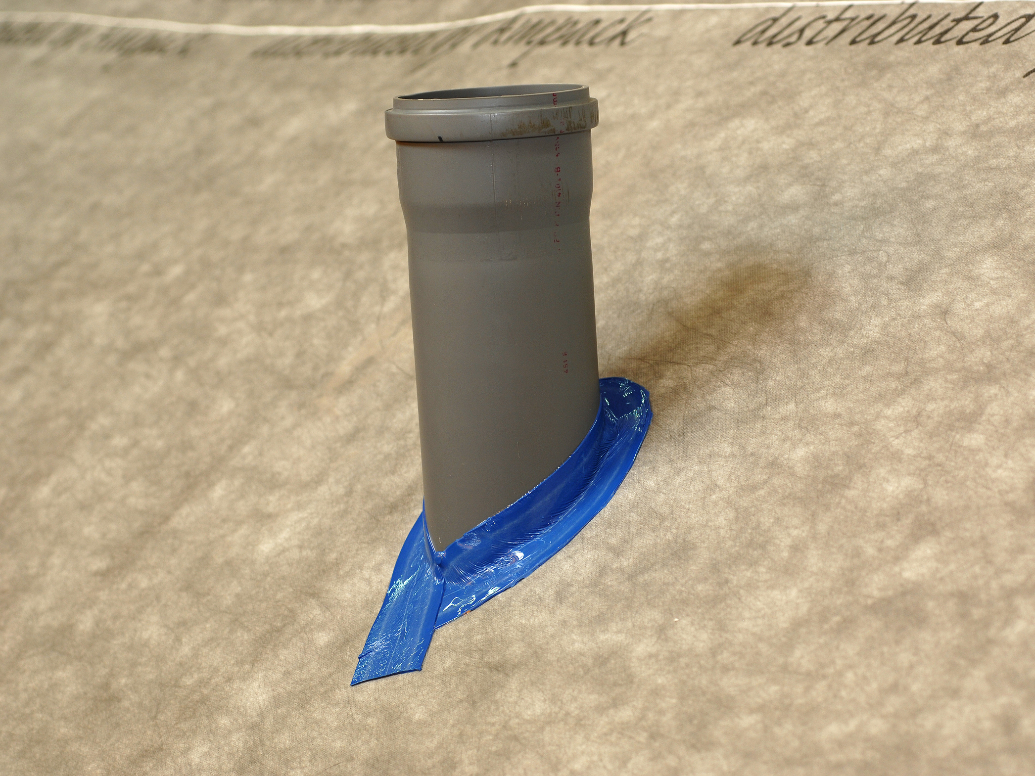Von Hand formbare Manschette. Einseitig klebendes, hochflexibles Butylkautschukband für die dauerhafte, einfache Abdichtung von Holzwerkstoffplatten und Durchdringungen durch Dampfbremsen und -sperren, wie Sparren, Pfetten, Dunstrohre usw., ggf. Primer verwenden!