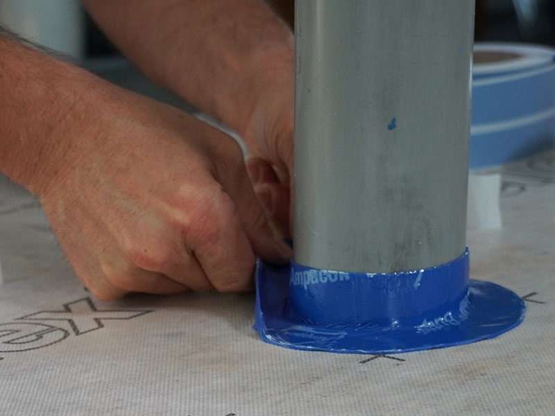 Transparente, vollflächig klebende Dampfbremse und Witterungsschutzbahn.
