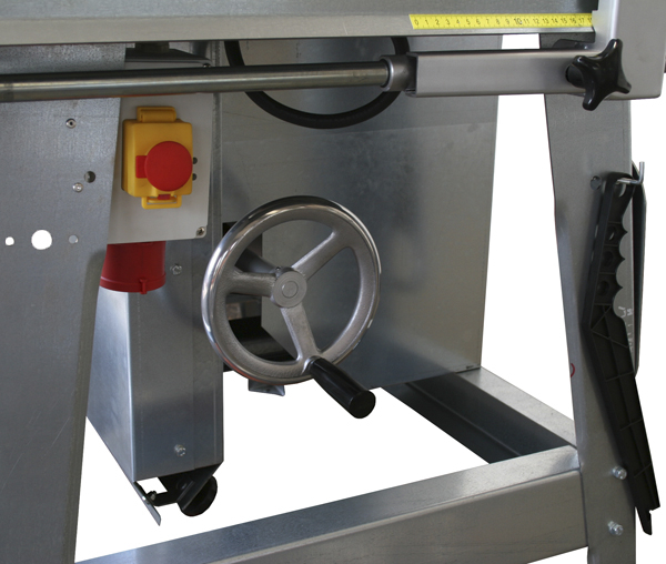 - Handrad für die genaue Parallelhöhenverstellung des Sägeblattes