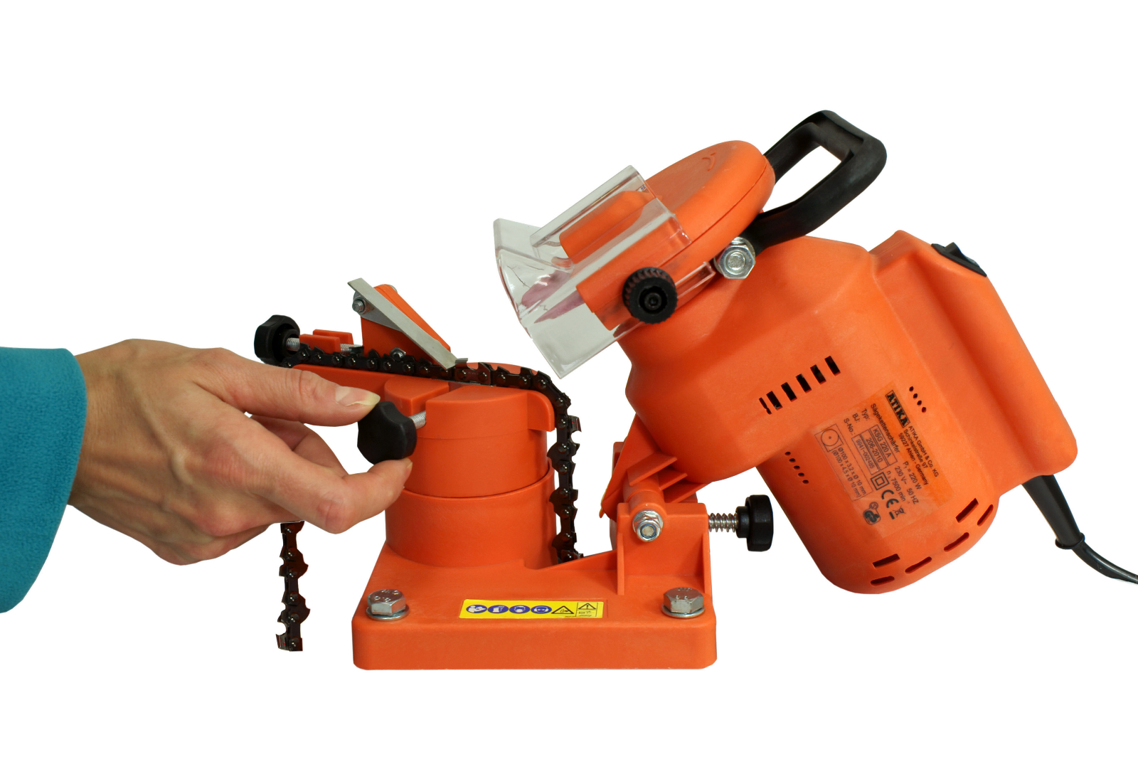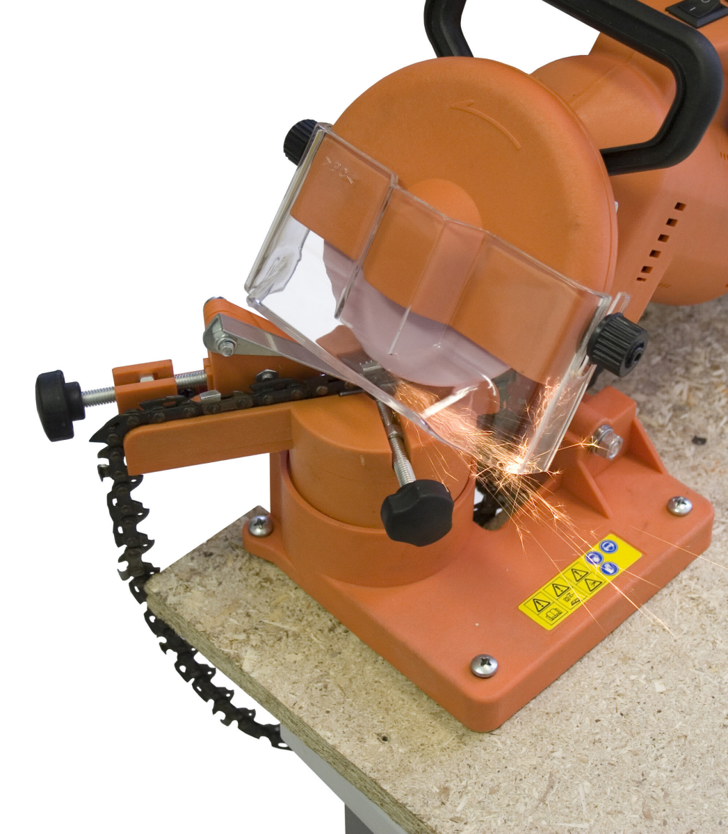 - Individuelle Einstellmöglichkeiten garantieren ein korrektes Schärfen aller handelsüb-lichen Sägeketten.