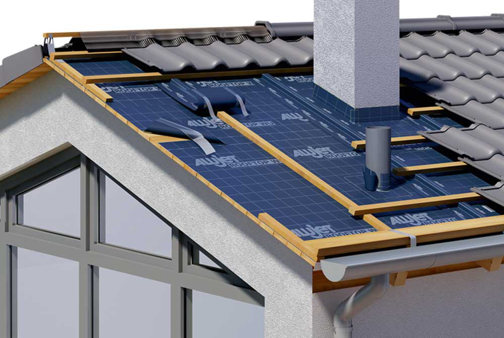 Der ALUJET Rooftop WU Konterlattenstreifen wird eingesetzt zur Ummantelung der Konterlatte in Verbindung mit der ALUJET Rooftop WU in Kombination als Unterdeck- und Schalungsbahn auf einem druckstabilem Untergrund (z.B. Schalung).
