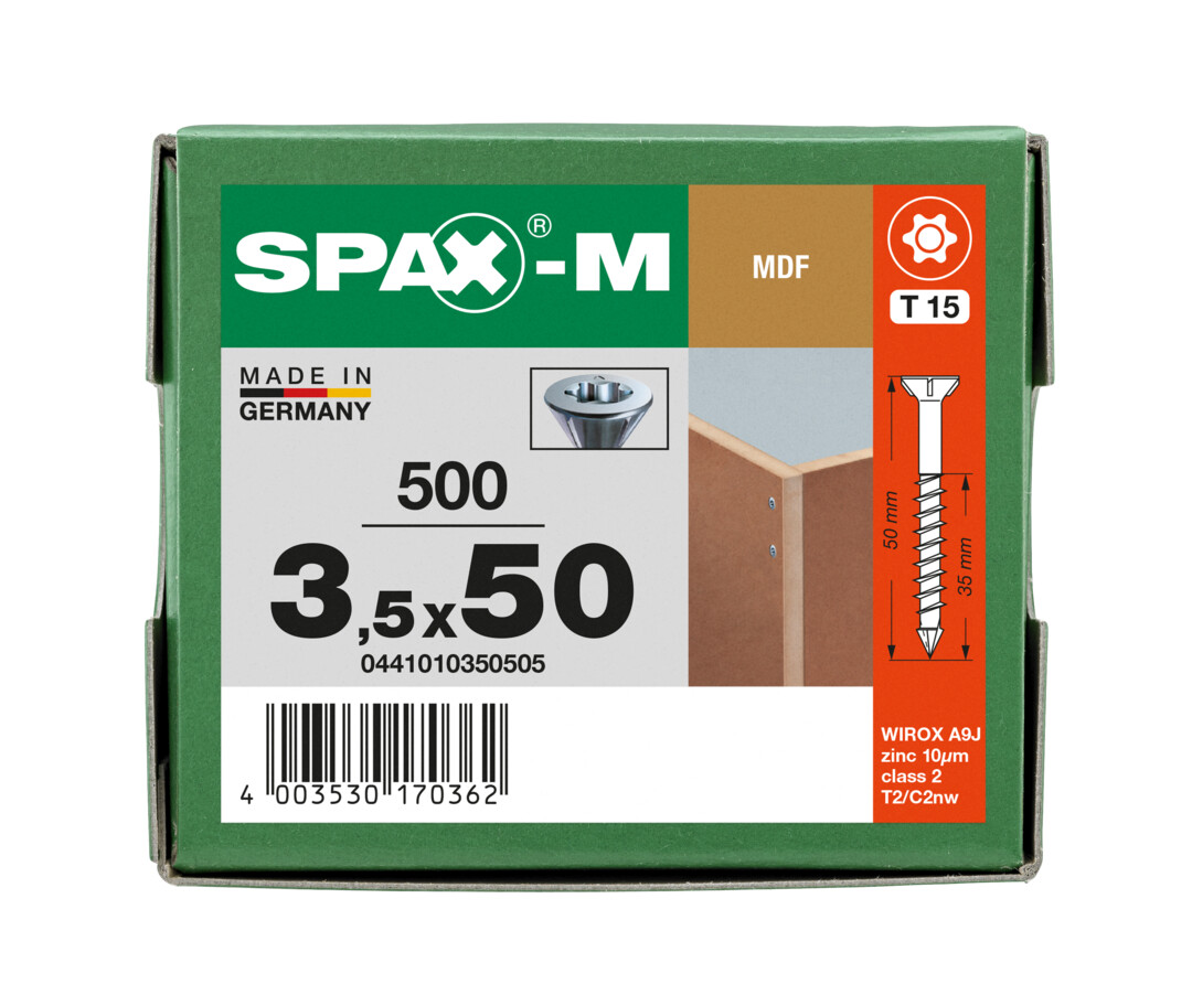 - Spezielle SPAX CUT-Spitze: punktgenaues Ansetzen, ermöglicht Einschrauben ohne Vorbohren (holzabhängig), verringert wirkungsvoll ein Spleißen und Ausbeulen des Materials