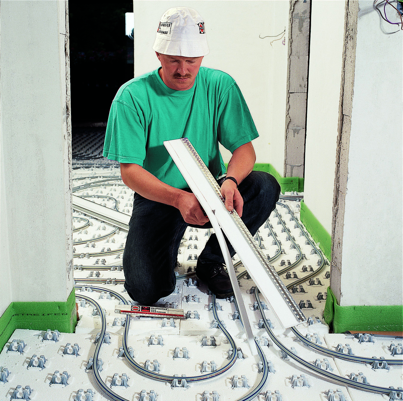 Der Einbau erfolgt vor dem Verlegen des Estrichs.