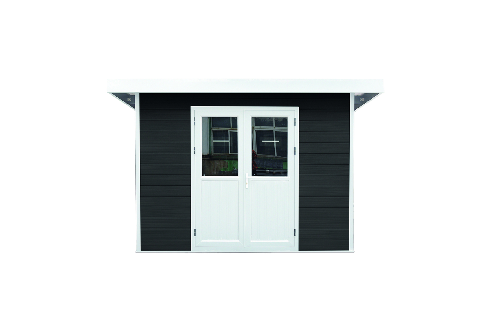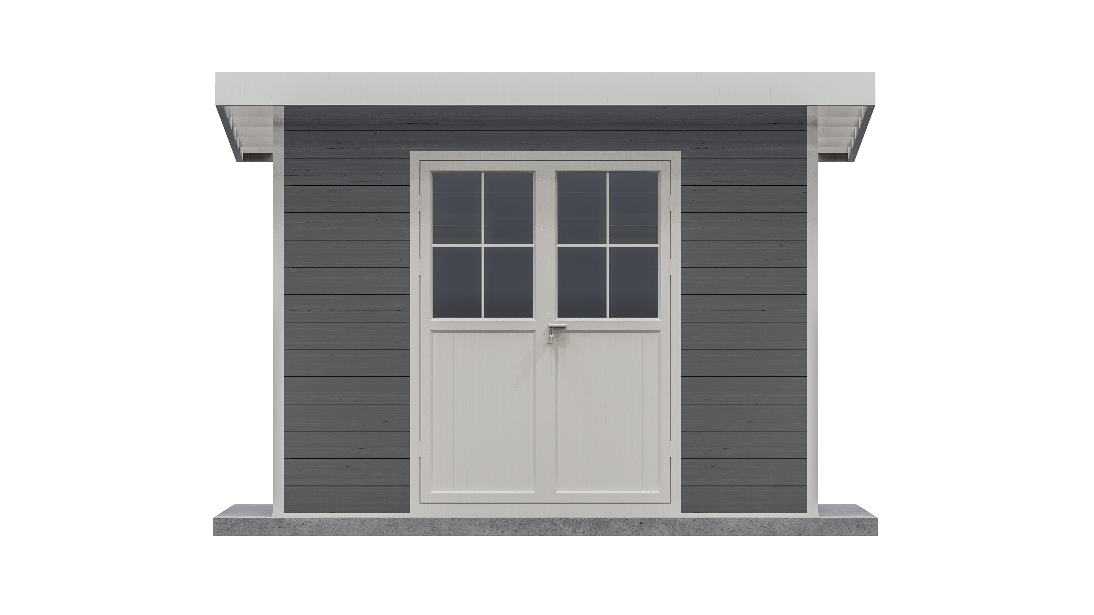 Das Gartenhaus in der Ausführung M ist ein Komplettset inklusive stabilem Gerüst und Türen aus Aluminium, WPC-Brettern für die Wände, einem Flachdach aus wetterfestem ASA-Kunststoff sowie Fenstern aus Sicherheitsglas. Das Gartenhaus in der Ausführung M bietet etwas mehr Stauraum, und durch die zweiflügelige Tür finden große Gegenstände unkompliziert ihren Weg in das Gartenhaus.