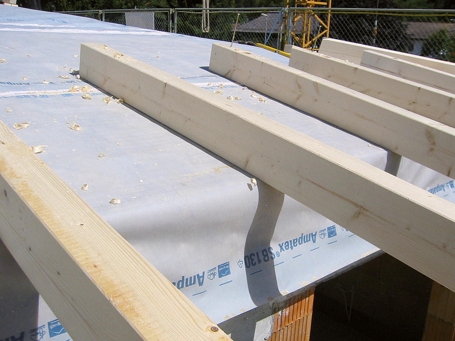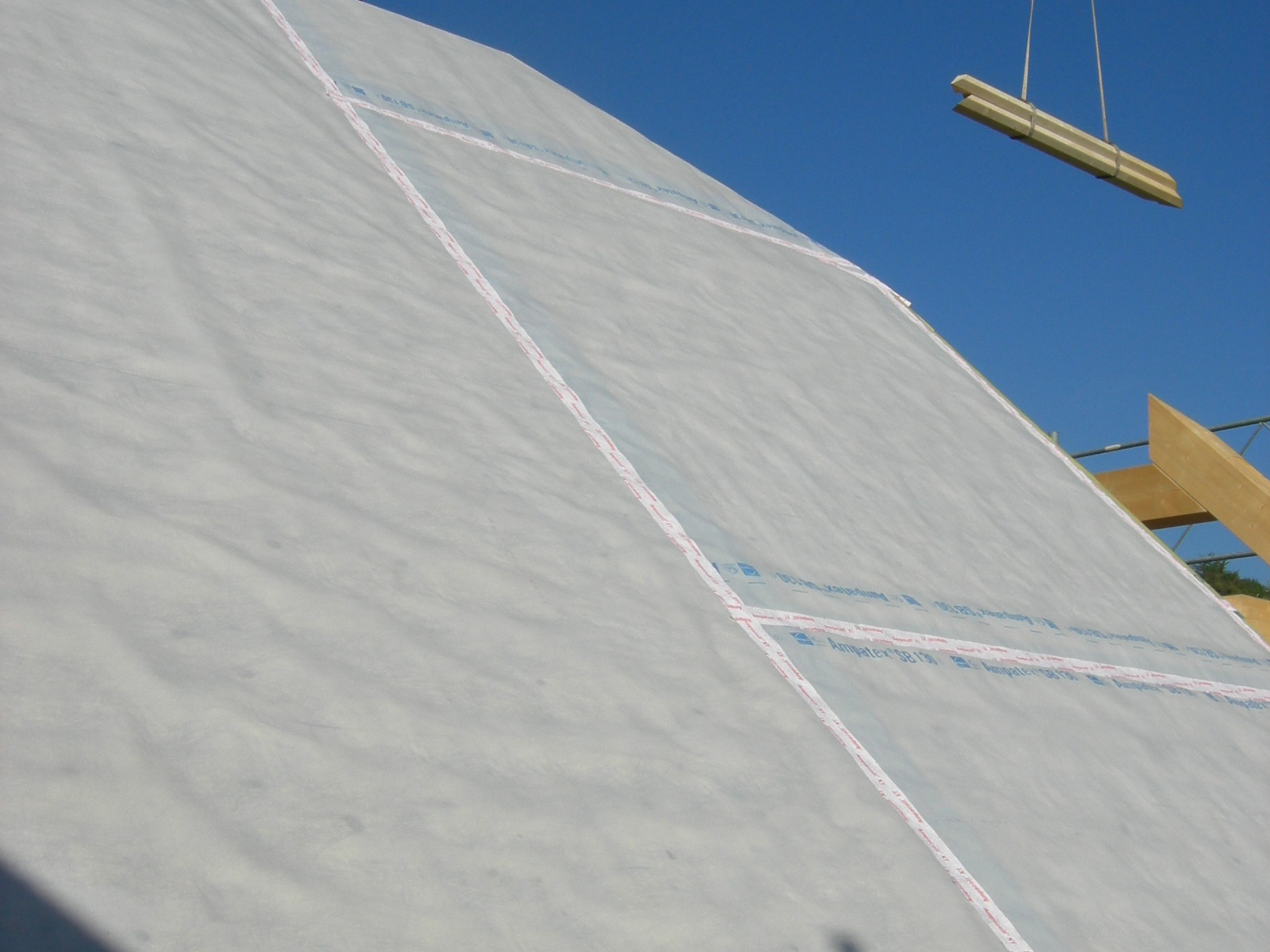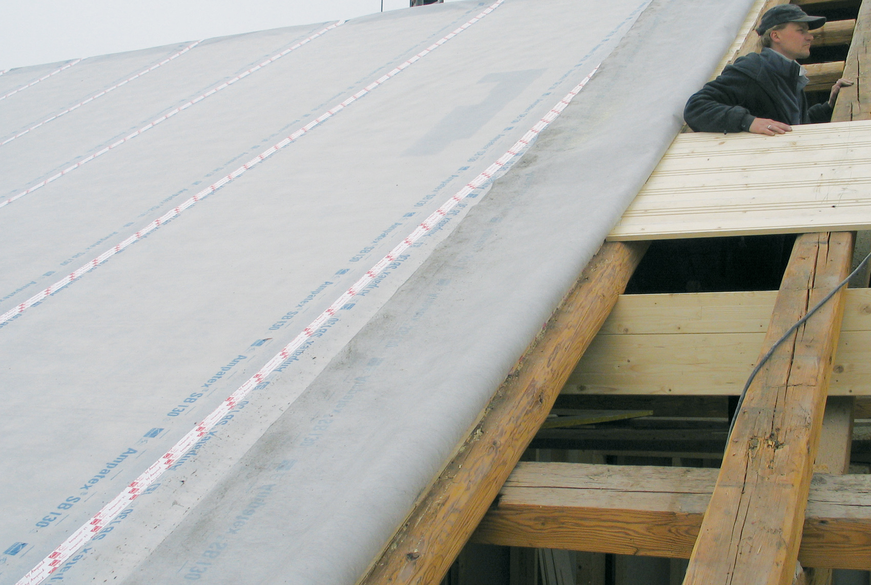 Zweilagige Dampfbremse, Luftdichtung und Schalungsbahn aus thermisch verfestigten Endlosfasern mit PP-Füllschicht (100 % Polypropylen). Freibewitterbar. Ideal für Aufsparrendämmung.