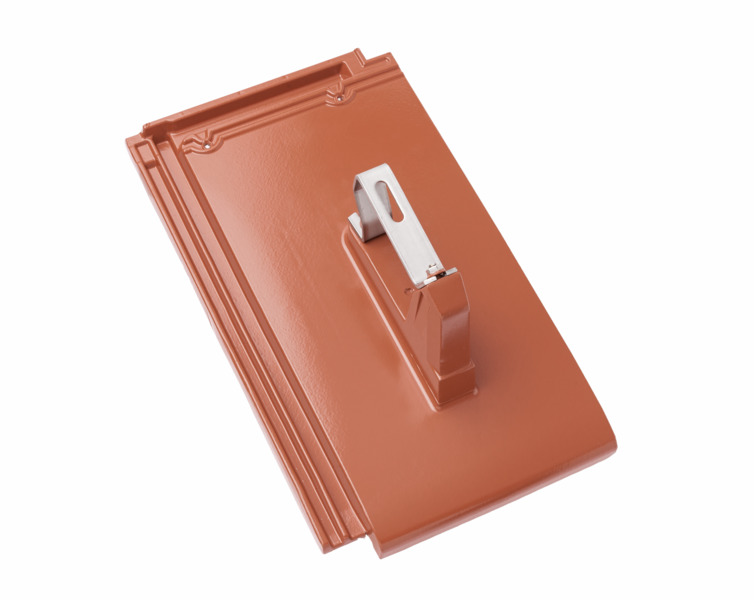Sie besteht aus einer modellabhängigen Grundpfanne aus Aluminium und einem anschraubbaren Modulstützenbügel und ist für fast alle Dachpfannen von BRAAS einsetzbar.