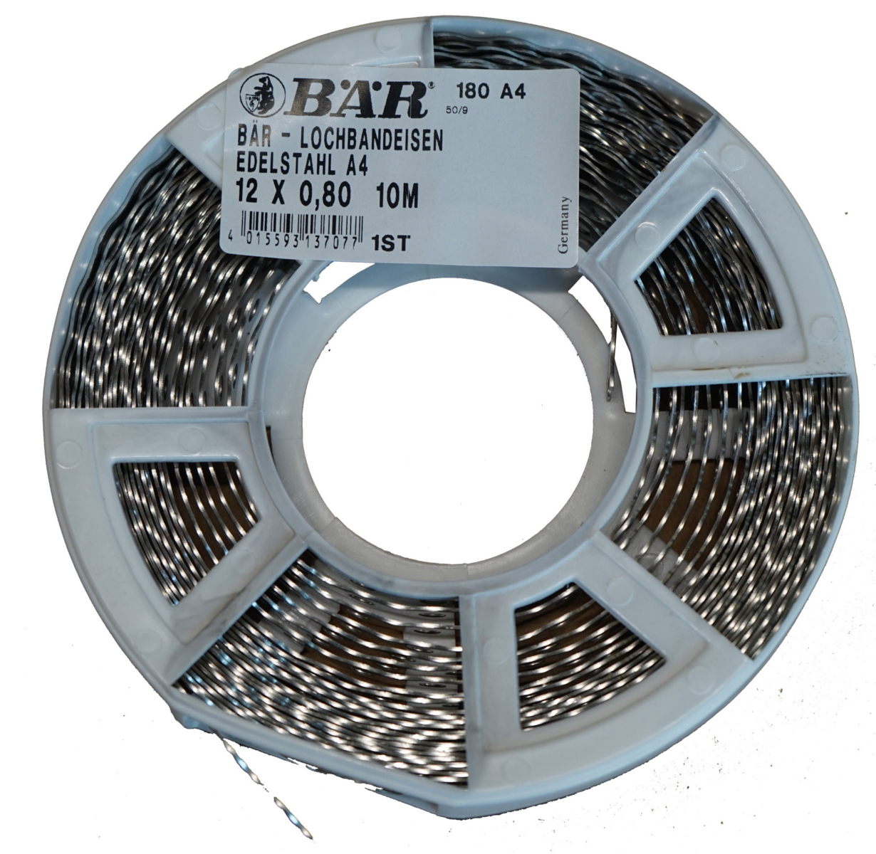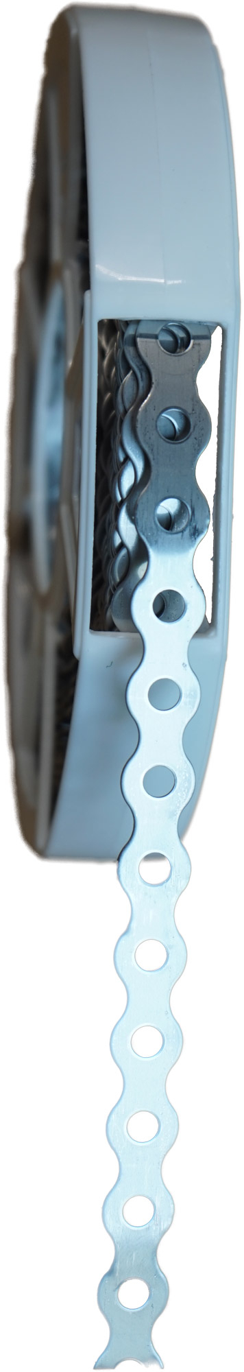 BÄR-Lochbandeisen gewellt in praktischen Kunststoff-Abrolldosen à 10m, Edelstahl A4.