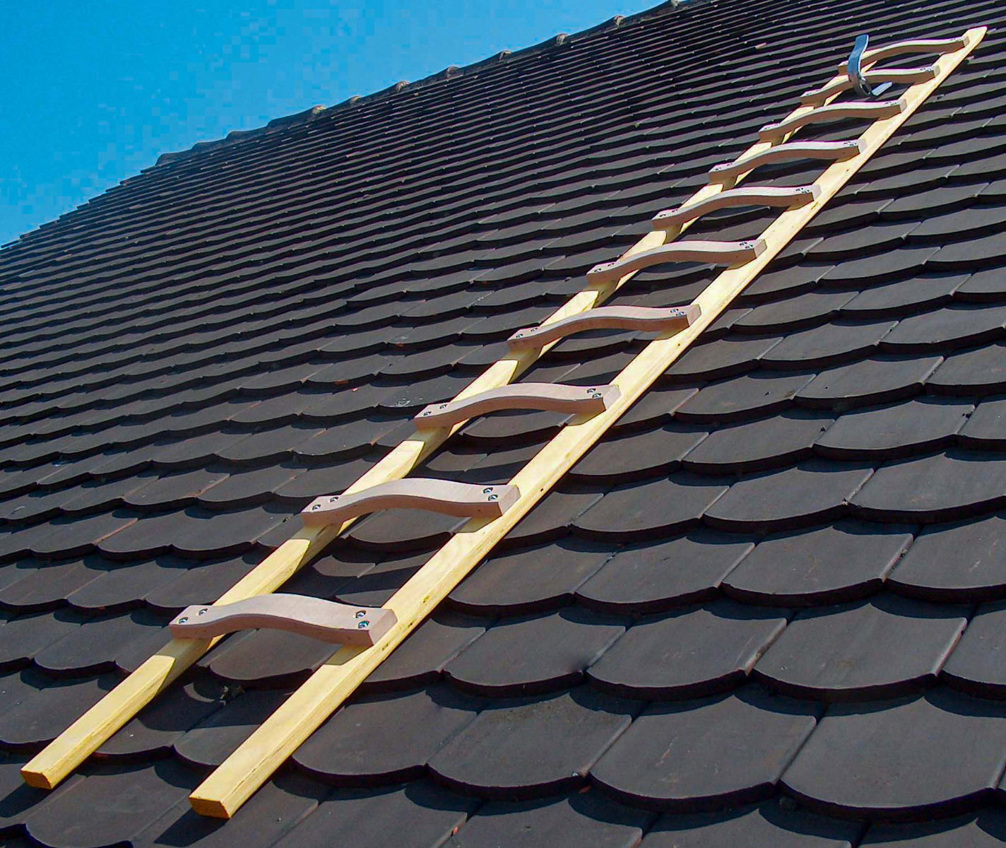 - hochfeste stationäre Dachleiter mit geschweiften Sprossen für sicheren Auftitt