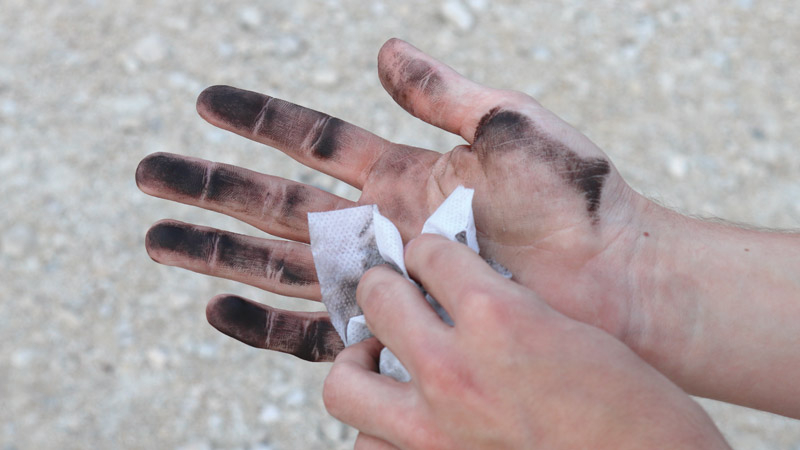 Flächen-, Werkzeug- und Handreinigung mit einem universellen Tuch, porentiefe Reinigung ohne Wasser und Seife.