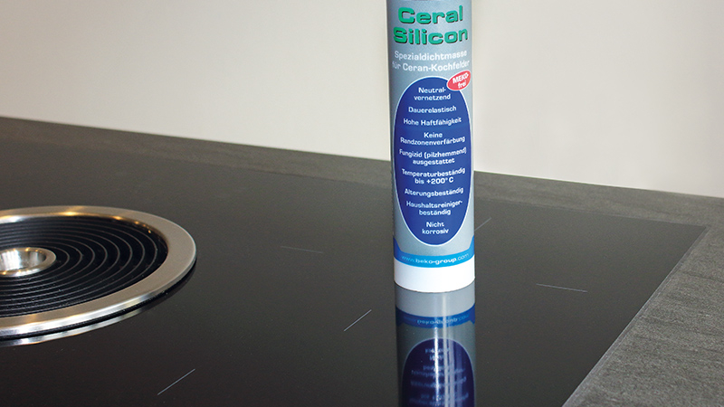 Speziell für den Einbau von Ceran-Kochfeldern, fungizid (pilzhemmend) ausgestattet, keine Randzonenverfärbung (bei Naturstein), beständig gegen verdünnte Säuren und Laugen, temperaturbeständig bis +200° C, beständig gegen haushaltsübliche Reinigungsmittel, nicht korrosiv