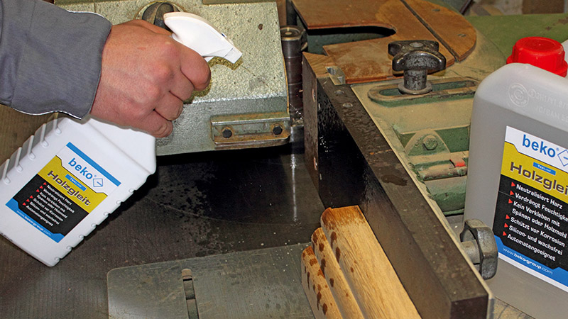 Verarbeitungsvorteile: Sicheres Führen des Werkstoffes, gleichmäßiges Bearbeiten von Holz, weniger Kraftaufwand, leichtes Gleiten auf nassem und verharztem Holz, keine Verschmutzung auf Maschinen und Materialien, kein Verstopfen von Auftragsdüsen und Handsprühern