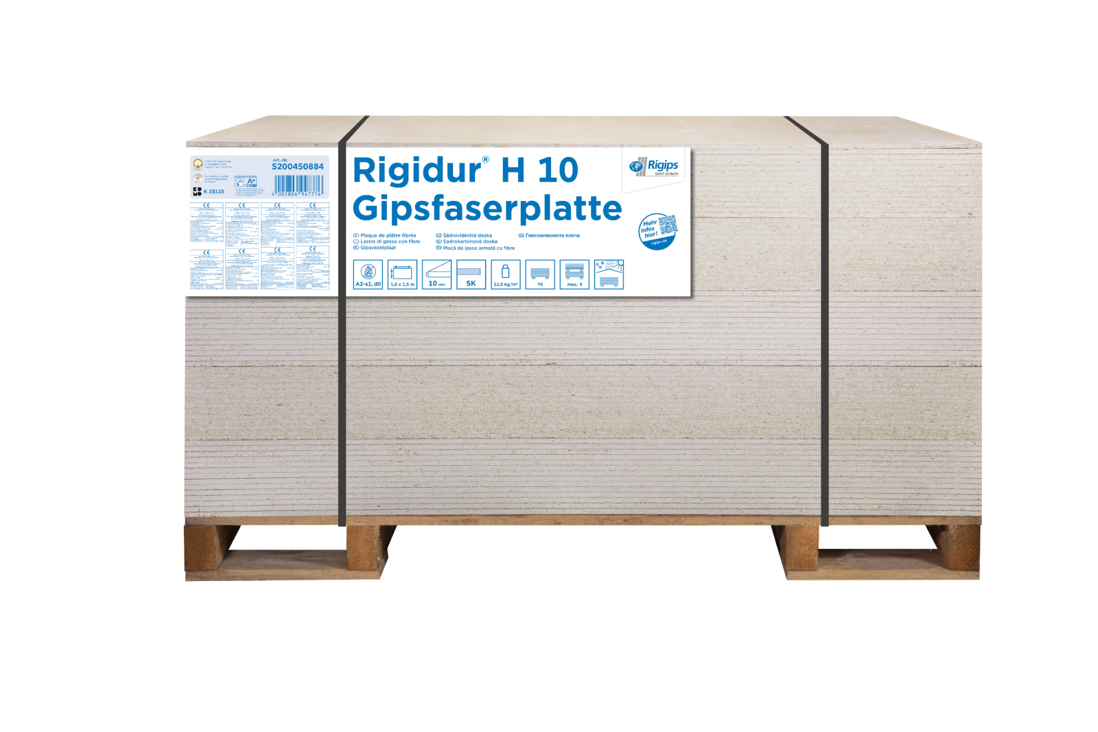 Die Rigidur H 10 Kleinformat von Rigips ist eine homogene Gipsfaserplatte mit scharfer Kante (SK). Die vorgrundierte Platte verfügt über eine glatte und extrem harte Oberfläche und dient zur Erstellung robuster Wand- und Deckensysteme mit Brand- und Schallschutzanforderungen. Format: 100 x 150 cm.