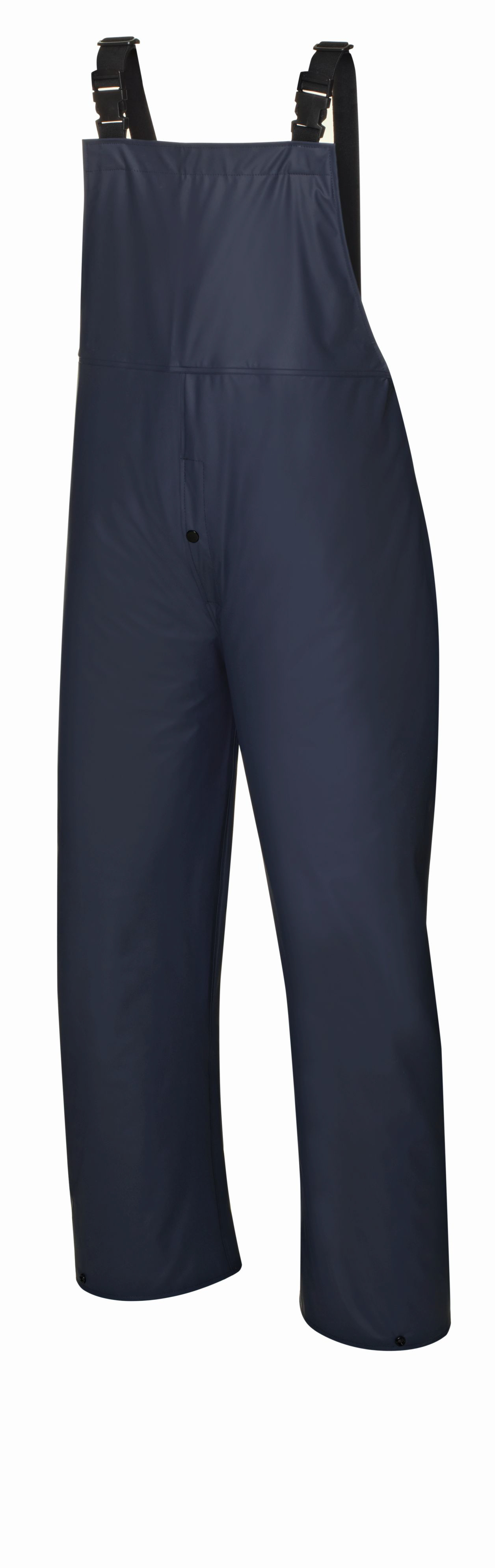 Robuste, auf komplette Wasserdichtigkeit ausgerichtete Regen-Latzhose mit doppelt versiegelten Nähten und justierbarem Bund und Beinabschlüssen.