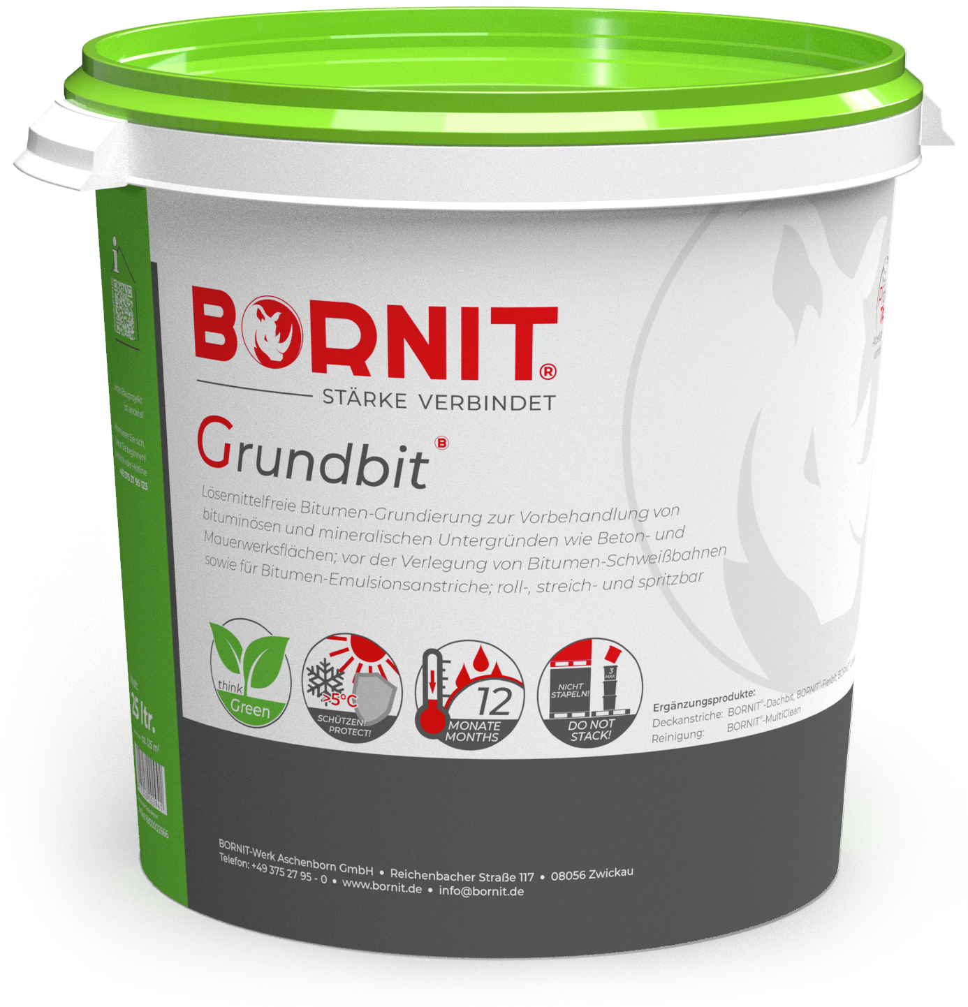 Streich- und spritzfähiger Polymer-Bitumen-Voranstrich; lösemittelfrei, geruchsneutral, auch auf matt feuchten Untergründen einsetzbar - dringt tief in den saugfähigen Untergrund ein, speziell für Arbeiten in Innenräumen empfohlen. Grundierung für Bitumenemulsionsanstriche und Schweißbahnen. Optimaler Voranstrich für die Greenline-Produkte BORNIT®-Dachbit; BORNIT®-Flexbit und BORNIT®-Unibit.