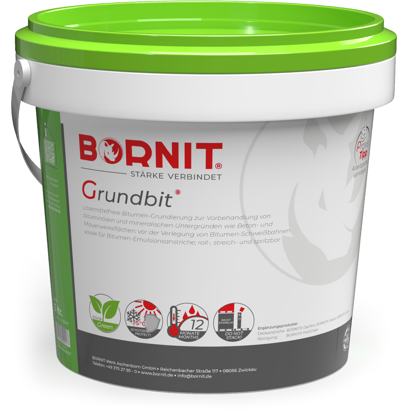 Streich- und spritzfähiger Polymer-Bitumen-Voranstrich; lösemittelfrei, geruchsneutral, auch auf matt feuchten Untergründen einsetzbar - dringt tief in den saugfähigen Untergrund ein, speziell für Arbeiten in Innenräumen empfohlen. Grundierung für Bitumenemulsionsanstriche und Schweißbahnen. Optimaler Voranstrich für die Greenline-Produkte BORNIT®-Dachbit; BORNIT®-Flexbit und BORNIT®-Unibit.