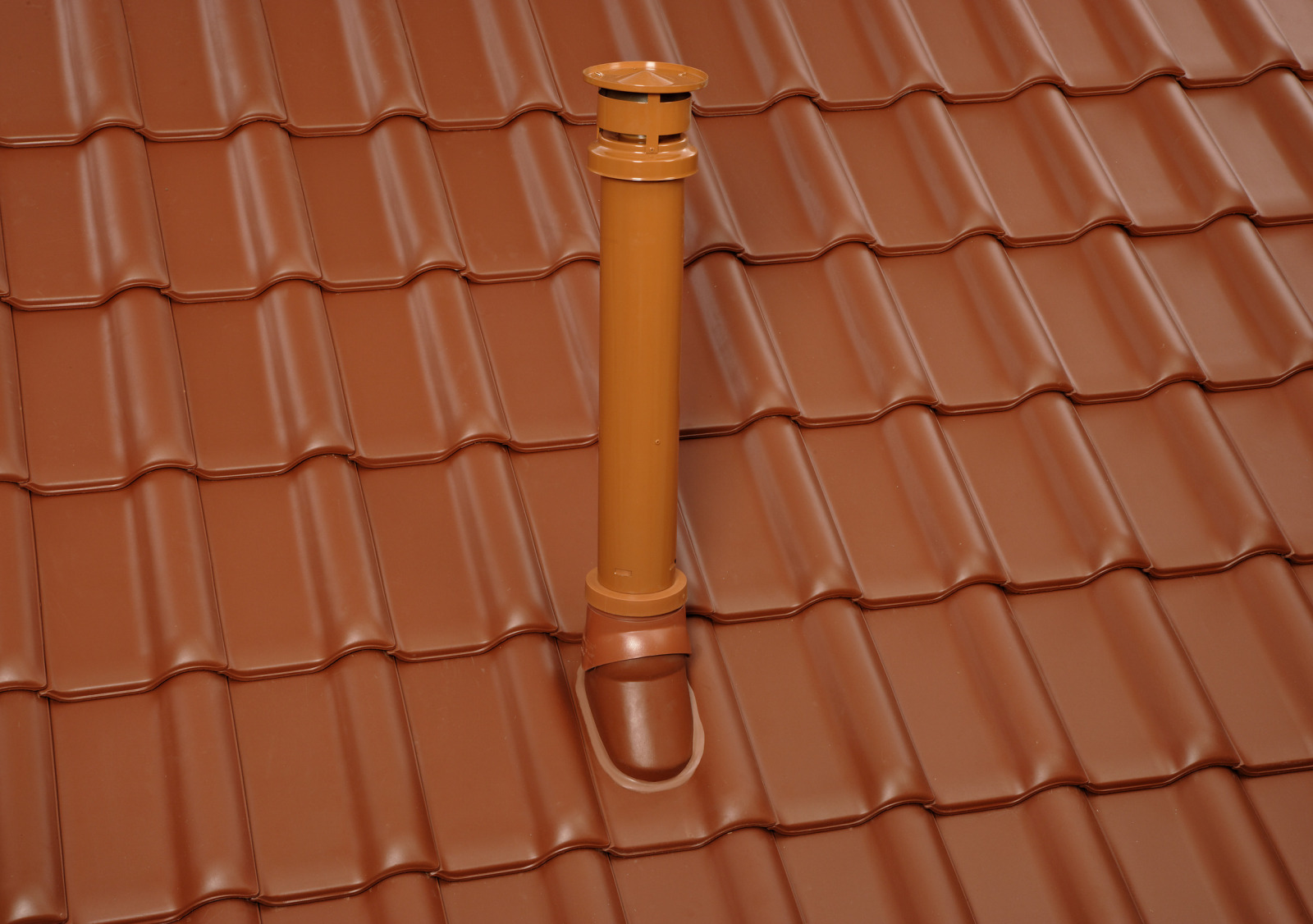 Der Ton-Abgasrohr-Dachdurchgang eignet sich für Abgasdoppelrohre von Gasfeuerungsanlagen und Brennwertgeräten.